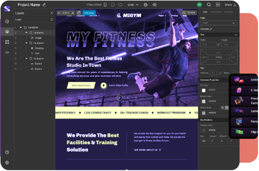 Sin código. Sin configuraciones complicadas. Simplemente arrastra, suelta y lanza un sitio web y un curso de alta conversión en minutos.