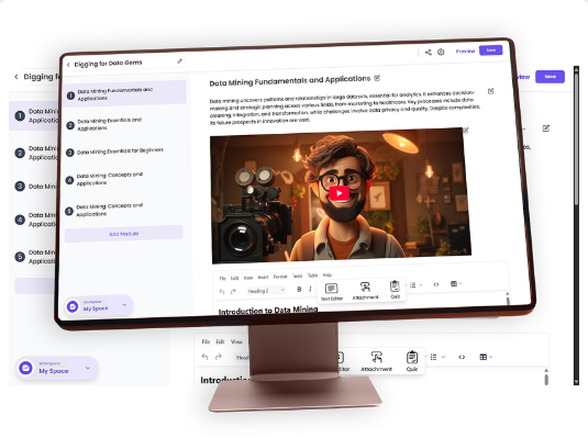 Sube tu contenido o deja que la IA genere lecciones, cuestionarios y descripciones. Convierte tus conocimientos en ganancias RÁPIDO..